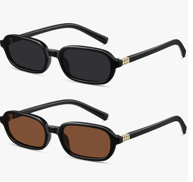 - SMALL RECTANGULAR SUNGLASSES: These women’s sunglasses features a small narrow rectangular frame in a 90s and y2k style and decorates the temples with exquisite metal accessories, exuding a retro and chic vibe. You’ll need these cute small sunglasses for women to create a fashionable look