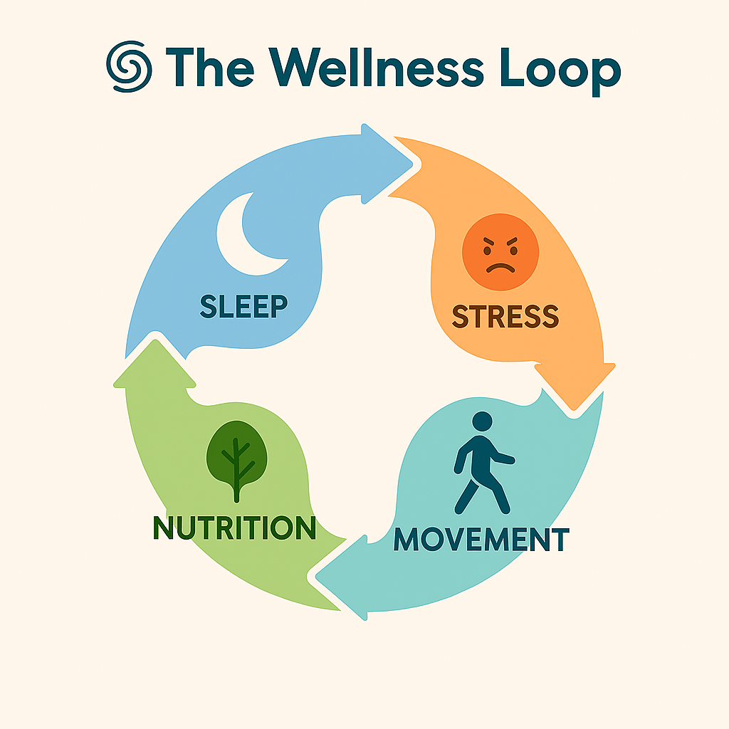 🌀 The Wellness Loop They say what goes around comes around—so why not make it hydration, movement, sleep, and a little spinach? Your body’s rhythm deserves VIP treatment.